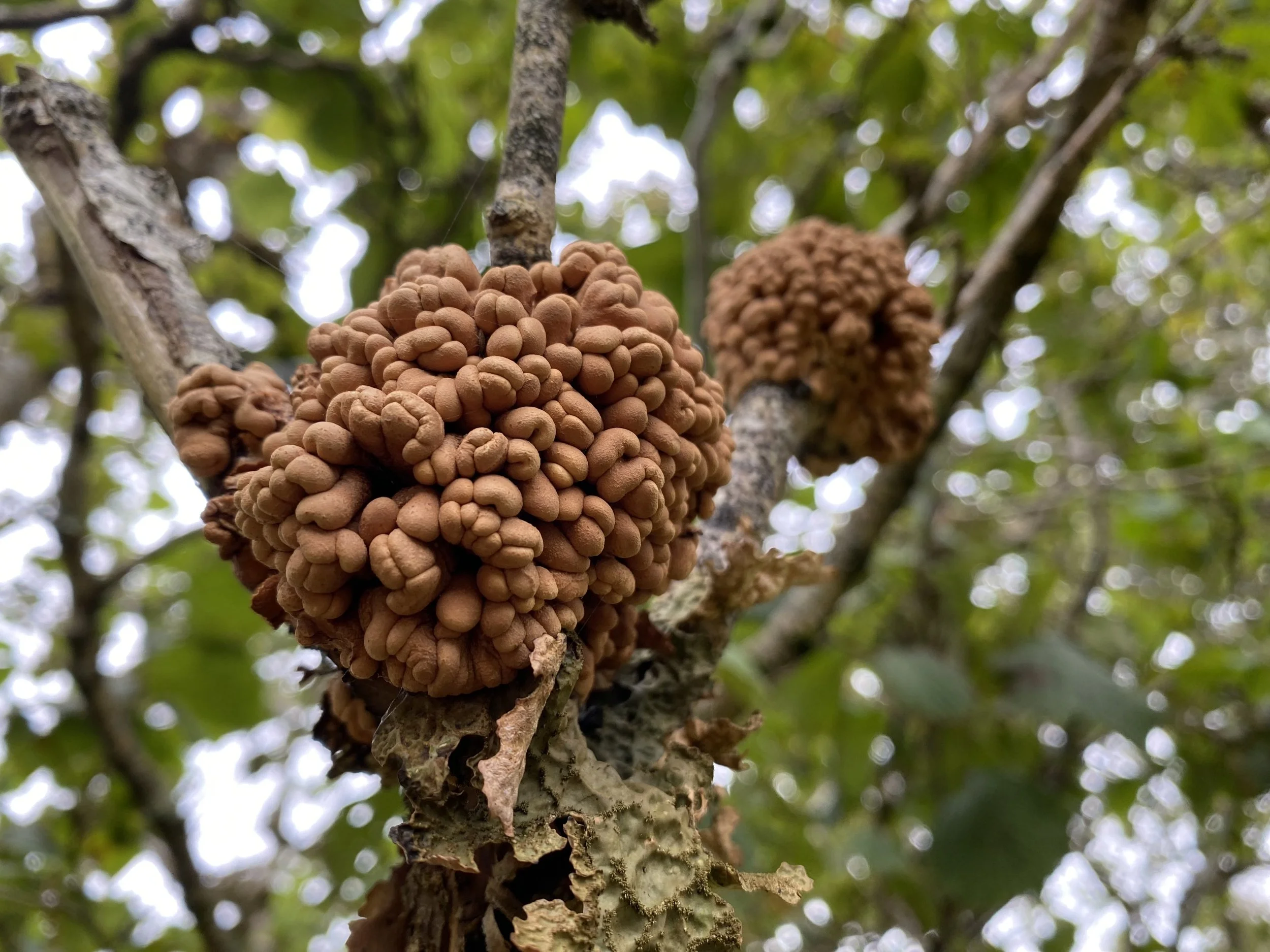 “It’s a globally rare, bizarre-looking fungus… in the same family as the famous Cordyceps that take control over insects. Turns out this species hunts down other fungi, particularly the Glue Crust. The Glue Crust grows through hazel stems and creates hard mycelial bridges that allows it to move along trees without touching the ground. The Hazel Gloves feeds off the mycelium of the Glue Crust in a kind of cat-and-mouse game, and in Britian they’re only found in Atlantic Hazelwoods, which I think are some of the most special types of temperate rainforest we have.”